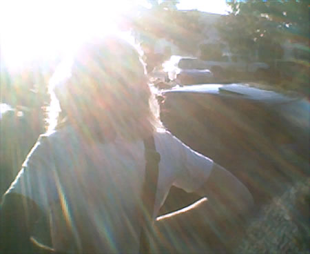 This was one of those late in the day, omigod-you're-not-taking-my-picture-NOW photos, taken with a crappy throw-away camera the CVS clerk warned us not to buy. And I love it!